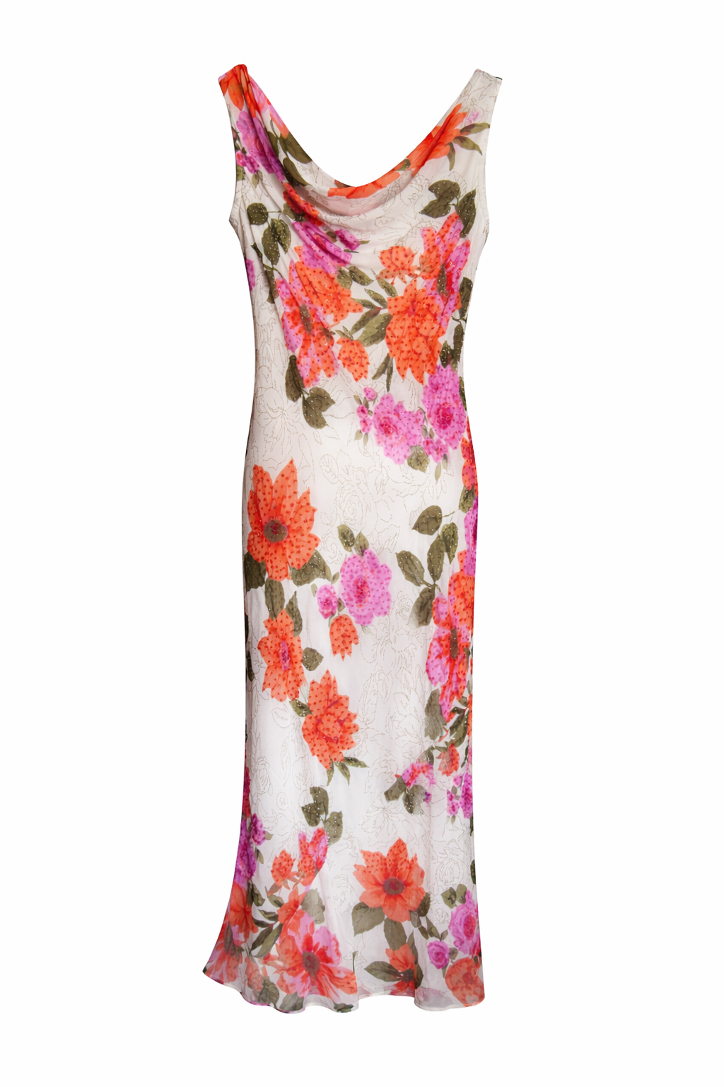 Vestido vintage único que destaca por su elegante escote drapeado, que cae suavemente sobre el pecho.